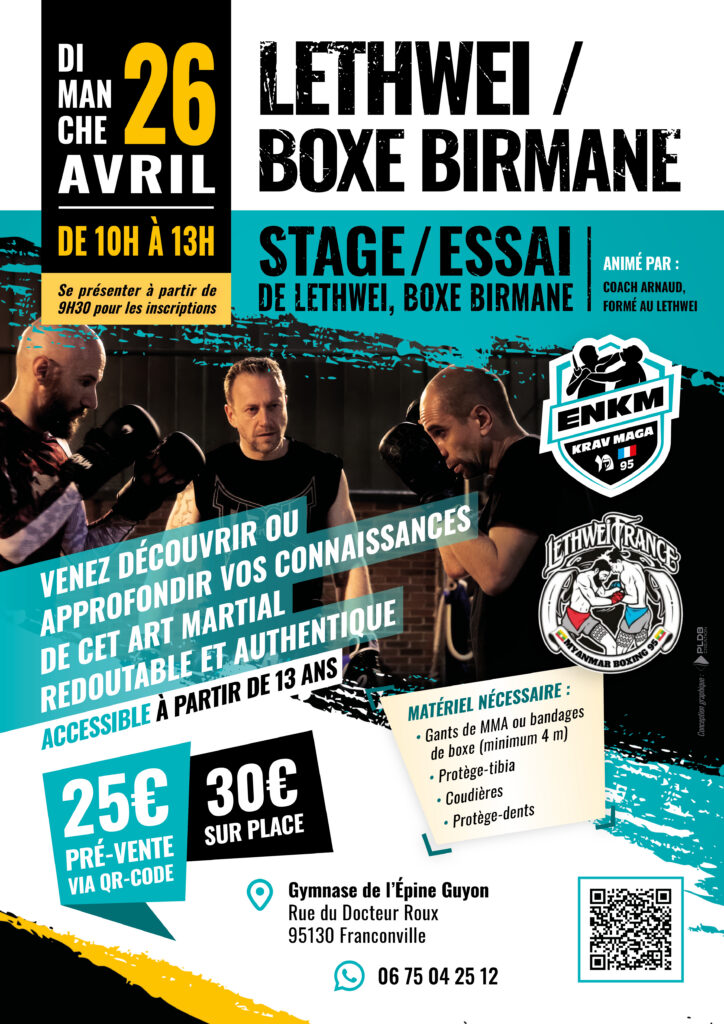 Le LETHWEI, est un art martial redoutable et authentique, c’est la célèbre “boxe des 9 armes”. Venez découvrir la puissance et l’art de la boxe birmane dans une ambiance conviviale et sécurisée avec votre coach Arnaud, formé au lethwei, pratiquant de boxe thaï, boxe birmane, boxe anglaise et Krav Maga dans un stage sur ce theme.
